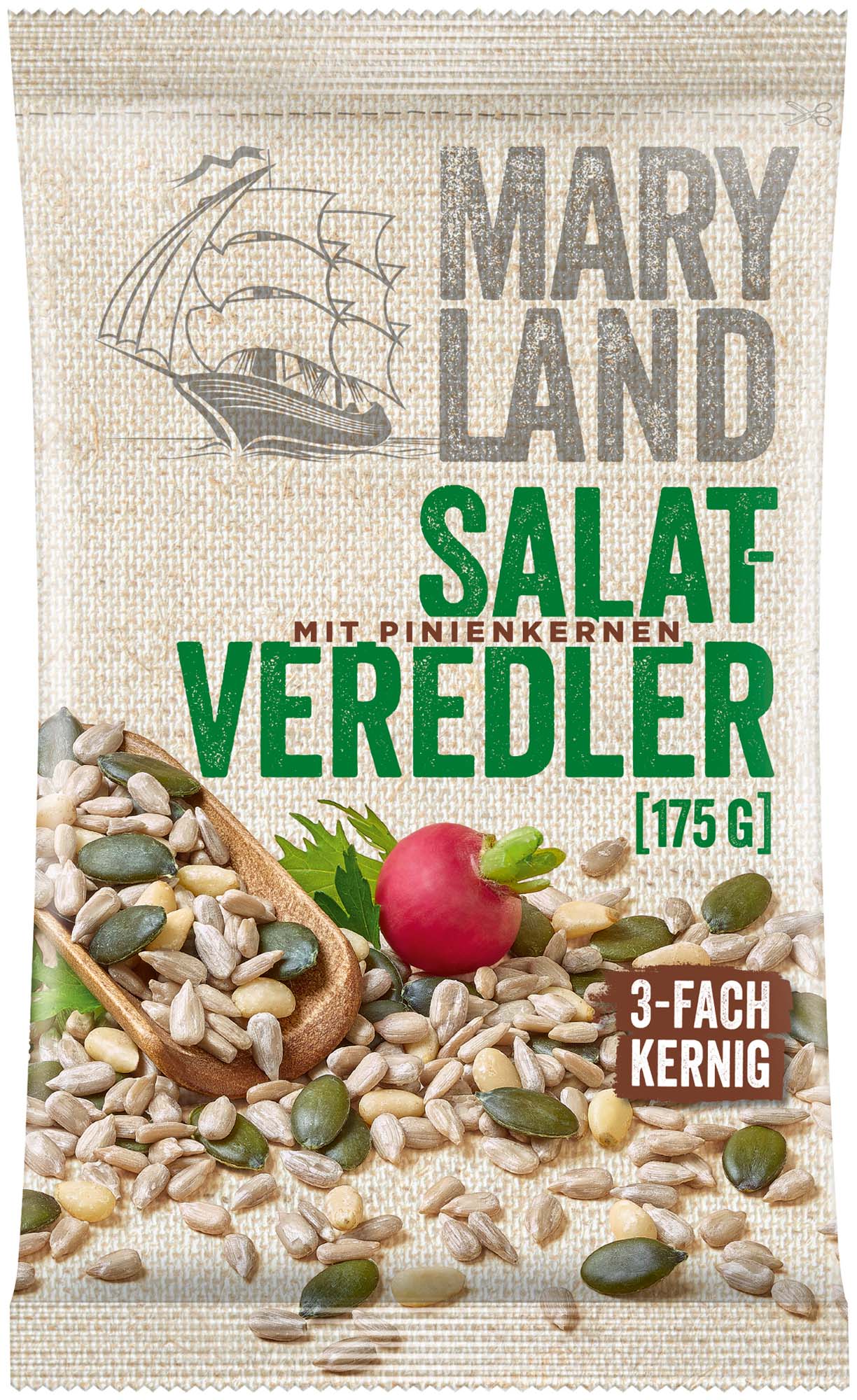 Ein vielfältiger und aromatischer 3-Kerne-Mix aus Sonnenblumenkernen, Kürbiskernen und Pinienkernen.
