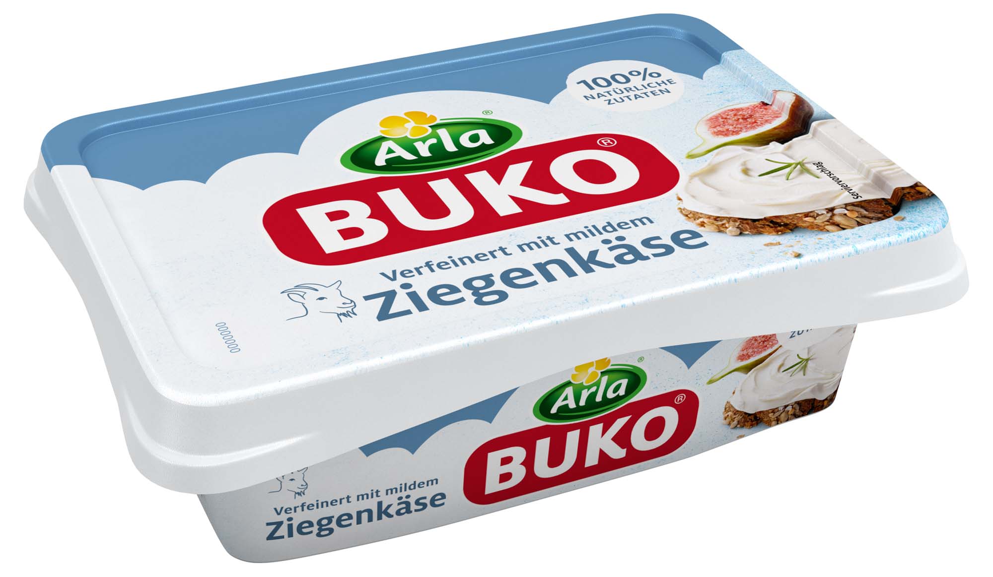 Bei Arla Buko® Milder Ziegenkäse trifft der beliebte Frischkäse-Klassiker auf die würzige Note von feinem Ziegenkäse. Die raffinierte Frischkäse-Variante ist besonders zu Konfitüren und Obst-Chutneys ein Hochgenuss.